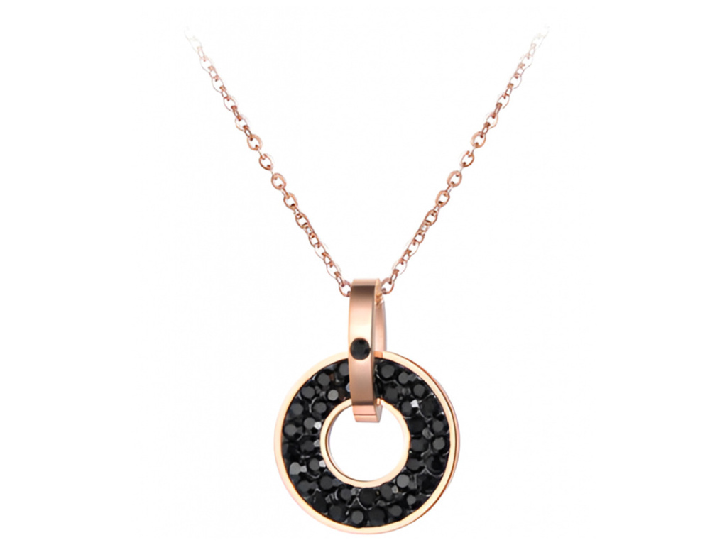 Elegantní náhrdelník FREYA z chirurgické oceli v barvě rose gold s černými krystaly je dokonalým doplňkem pro každou příležitost. Vynikne jako stylový dárek, který oslní ženy všech věkových kategorií.